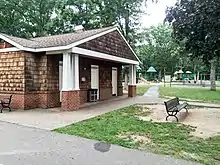 Bethpage State Park's name reflects the locality names that existed at the time of its creation. Old Bethpage was known as Bethpage prior to 1936, when the adjacent hamlet of Central Park changed its name to Bethpage.[7] Following this name change, the hamlet originally called Bethpage resisted suggestions that it merge with the new Bethpage, and got approval from the post office to change its name to Old Bethpage, though it did not have its own post office until 1965.[8] The parcel of the Quaker Bethpage Friends Meeting House, across from the Park entrance, is within Old Bethpage hamlet boundaries, but abuts residences within the Lenox Hills area of Farmingdale Village. These specific border circumstances clarify that the park has close ties to Farmingdale.