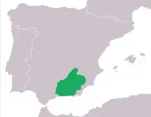 The Betic midwife toad is native to the Sierra Nevada Mountains in south eastern Spain. The population is fragmented as different mountains support separate populations. It is fairly common on Alcaraz, Segura and Cazorla Mountains but less common on the drier Filabres, Baza and Gádor peaks. It is generally found in oak and pine forests and in open rocky areas, mostly on limestone, at altitudes between 700 and 2,000 metres (2,300 and 6,600 ft). In drier parts it tends to be near springs.[1]
