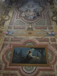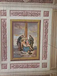 The main attraction of the church is the original ceiling mural done by the famous painter Simón Flores (1839–1904). Not to be missed are his original painting of the Holy Family, the artesian well (dug in the 1800s) in the patio – the first well in the country to be so situated, and the rare betis tree nearby donated by sociologist Randy David, a native of the town. A two-minute walk from the church is the restored David House, ancestral home of the sociologist, which they christened as Bale Pinauid or Bahay Pawid.[5]