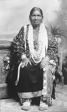 Betsy Thunder (c. 1850s – 1913)[1] was a medicine woman of the Ho-Chunk tribe, also known as the Winnebago Sky Clan. Thunder is believed to have been born in the 1850s on native Ho-Chunk land near Black River Falls in Wisconsin.[2] Her exact birth year is not known due to the loss of spoken history. Thunder was part of the respected Decorah bloodline.[2] Betsy Thunder married William Thunder, a medicine man to whom she became an apprentice for many years.[1][2] William Thunder trained her to become a medicine woman with the hope of passing on the skills and practices of medicine men and women to future generations.[2] Betsy Thunder had four sons to whom she passed down these skills to, one of which, John, also became a medicine man.[1] Despite knowing little to no English Betsy Thunder is known for treating both Ho-Chunk and white patients alike.[2] Thunder was paid for her healing services in common goods such as food, clothing, blankets and other essential goods.[1][2]
