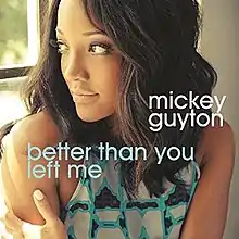 "Better Than You Left Me" is the debut single from American country music artist Mickey Guyton. It was released to country radio on January 12, 2015 as the first single from her self-titled second EP (2015) and forthcoming debut studio album for Capitol Nashville.[2] The song was written by Guyton, Jennifer Hanson, Jenn Schott, and Nathan Chapman.[3] A re-recorded version of the song is included on Guyton's 2021 debut album Remember Her Name.