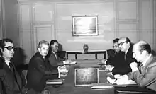 Craxi was appointed to the vacant position of National Secretary of the party, ending years of factional fighting within the PSI.[30] Ironically, the "old guard" saw him as short-lived leader, allowing each faction time to regroup. However, he was able to consolidate power and implement his policies. In particular, he sought and managed to distance the party from the Communists, bringing it into an alliance with Christian Democracy and other centrist parties, while maintaining a leftist and reformist profile.[31]