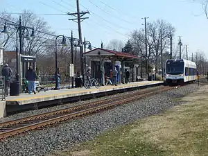 - ↑ Mulvihill, Geoff (March 15, 2004). "Smooth Sailing for Light Rail on First Day of Operation". The Courier-News. Bridgewater, New Jersey. Associated Press. p. A3. Retrieved February 23, 2019 – via Newspapers.com.