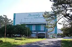 Beverly Drive-In Theatre was constructed in 1948 as a cinema structure in Forrest County, Mississippi. The main screen measured 105 by 75 feet (32 by 23 meters), and the theatre contained a paved parking area for 500 cars.[1] The back of the screen tower held a display of neon lights that denoted the Beverly logo with a moon and shooting stars. The original owners built their family home beneath the main screen.