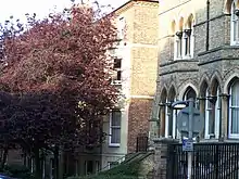 To the south is St Anne's College, one of the former women's colleges of the University of Oxford, fronting onto Woodstock Road and backing onto Banbury Road. All of the properties fronting onto the south side of Bevington Road are property of St Anne's College, and most are used for undergraduate accommodation.[6]