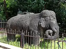 This museum houses a large number of archaeological finds, maps and historical photographs of Mumbai, clay models, silver and copper ware and costumes. Its significant collections include a 17th-century manuscript of Hatim Tai.[11] It also houses the iconic Kala Ghoda statue. Outside the museum is the installation of the monolithic basalt elephant sculpture recovered from the sea, which originated from Elephanta Island (Gharapuri Island).
