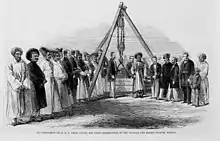 Sir Henry Bartle Frere laying the chief corner-stone of the museum, with Jagannath Shankarseth in 1862