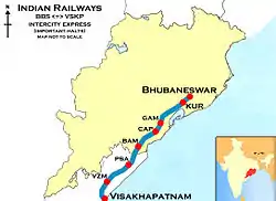 - ↑ "Vskp-Bbs intercity to run 6 days a week". The Hindu. 30 June 2011. Archived from the original on 10 November 2012.