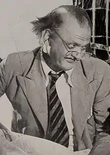 Bhudo Advani (17 August 1905 – 25 July 1985)[1] was an Indian character actor and comedian. He started his acting career in theatre with the notion of spreading awareness on social issues. He came to Bombay on the advice of an Ajanta Cinetone representative and was offered a role in the film Afzal, also called Hoor-E-Haram in 1933, directed by Mohan Bhavnani.[2] He later joined Sagar Movietone, becoming an important fixture in most films produced by them. He turned from character roles to comedy performing in Dr. Madhurika (1935), directed by Sarvottam Badami, Deccan Queen (1936) and Do Diwaane (1936), by C. Luhar.