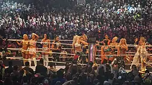 - ↑ Clapp, John (November 24, 2019). "Team NXT def. Team Raw and Team SmackDown (Women's Survivor Series Elimination Triple Threat Match)". WWE. Archived from the original on December 7, 2019. Retrieved November 24, 2019.