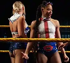 After two official tryouts,[8][9] Blair signed a contract with WWE on April 12, 2016, and was assigned to the WWE Performance Center in Orlando, Florida.[2] Blair made her first appearance during an in–ring segment at an NXT live event on June 25 as "Binky Blair", where she proclaimed to be the "EST of NXT... prettiest, baddest, strongest."[14] She made her in–ring debut on September 29, losing to Aliyah.[15] On the May 3, 2017, episode of NXT, Blair made her television debut under the ring name Bianca Belair, taking part in a battle royal to determine the number one contender for the NXT Women's Championship, but was eliminated by Billie Kay and Peyton Royce.[16] Belair participated in the Mae Young Classic, defeating Sage Beckett in the first round,[17] but was eliminated in the second round by the eventual tournament winner Kairi Sane.[18]