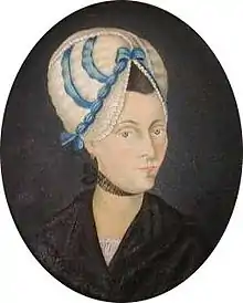 In 1750 Bianca, Giuseppe Valeriano Vannetti (an esquire and knight), local writer Girolamo Tartarotti, and several other prominent residents of Rovereto announced their intent to turn the Saibantes' literary circle into a proper academy.[3] The new institution—based on the Accademia degli Arcadi in Rome—was concerned with stimulating the intellectual environment in Rovereto, which Bianca's co-founder Tartarotti lamented was “only abundant in silk, cocoons and silkworms”.[2] The new academy was named the Accademia Roveretana degli Agiati di Scienze, Lettere ed Arti, and was intended to be accessible to both the middle and upper classes.[2] Bianca—who used the pseudonym Atalia Sabina Canburi—contributed heavily to the academy's successes; she corresponded with other European intellectuals, worked to promote the mission of the academy in Rovereto, and personally designed the academy's emblem.[1]