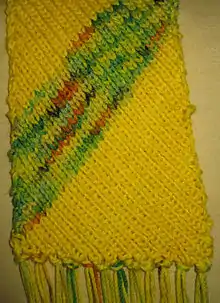 Bias knitting is where the rows of a fabric run diagonally, instead of horizontally.