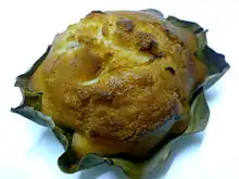 Bibingka (/bɪˈbŋkɑː/; bi-BEENG-kah) commonly refers to a type of baked rice cake from the Philippines that is traditionally cooked in a terracotta oven lined with banana leaves and is usually eaten for breakfast or as merienda (mid-afternoon snack) especially during the Christmas season. It is also known as bingka in the Visayas and Mindanao islands.[1]