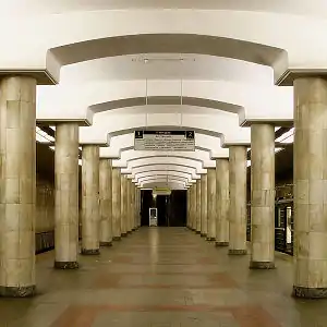 Bibirevo (Russian: Бибирево) is a station of the Serpukhovsko-Timiryazevskaya Line of the Moscow Metro. It was opened in 1992, and until the extension to Altufyevo was the terminus of the line. The station is a pylon-trivault, but the columns are cylindrical rather than the rectangular shape found on other similar stations.