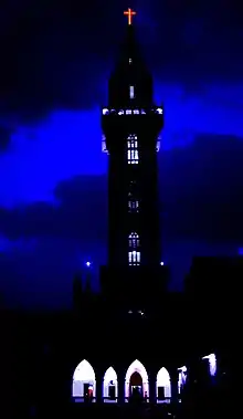 The Bible Tower is situated in Thrissur city of Kerala, India. It was inaugurated on 7 January 2007. The tower is the tallest church tower in India and Asia. It is also the tallest structure in whole of Kerala.[1] The 79 metre (260 ft) tower stands behind two towers of 42.5 metres (140 ft) height.[2]