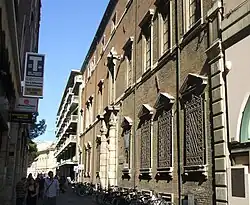 The Palazzo Gambalunga, as the building housing the library is known, was commissioned by Alessandro Gambalunga, a Riminese lawyer.[1][2] It was constructed between 1610 and 1614 at the cost of 70,000 scudi.[2] The road, then named Via del Rigagnolo della Fontana, was already inhabited by nobles.[2][3]
