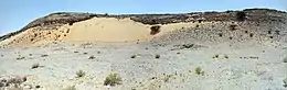 ![]() A panoramic view of the Eastern slopes of Bidaa Bint Saud, showing Hafit period beehive tombs. The Iron Age building is at the top of the tell. | |