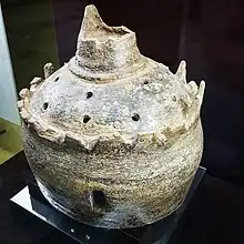 A second set of collective graves found at the site dated from the Iron Age and were also built of uncut or rough-cut stone and formed into a variety of shapes. These were divided into several chambers, each of which contained the remains of several people. Despite having been plundered in the past, excavations from these Iron Age tombs yielded a number of artefacts, including pottery and stone vessels, dagger blades, bronze arrowheads, and beads.[1]