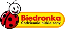 Biedronka is a chain of supermarkets. It is the largest chain of discount shops in Poland with 3,283 stores as of 2022[1] and 70,000 employees (2022).[2] It is owned by the Portuguese group Jerónimo Martins. The name "Biedronka" means "ladybug", and a cartoon ladybug is the company's logo.