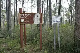 Entrance sign to the big branch marsh national wildlife refuge.