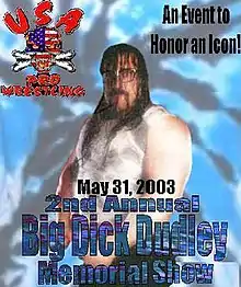The Big Dick Dudley Memorial Show was an annual professional wrestling memorial event produced by the USA Pro Wrestling (USA Pro) promotion, held in 2002 and 2003. The show was held in memory of Big Dick Dudley, who died of kidney failure at his apartment in Copiague, New York on May 16, 2002, with a portion of the proceeds going to his family. A collection from the audience was taken up during the shows as well. The event also served as a reunion show for former alumni of Extreme Championship Wrestling, where Dudley had spent much of his career as a member of The Dudley Brothers, as many appeared at the show to pay their respects.[1]