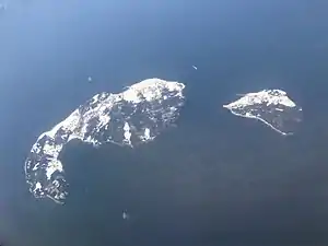 Big Tancook Island is the largest of many islands in Mahone Bay, Nova Scotia.[1] It measures approximately 4 km (2.5 mi) (north to south) by 1.6 km (1.0 mi) forming roughly a "C" shape. Its area is 550 acres (2.2 km2) and has a rocky shoreline with open fields and softwood forest dotted by ponds, residential properties and fish stores. It is separated from nearby Little Tancook Island to the east by a 1 km (0.6 mi) wide strait called "The Chops". Big Tancook Island is approximately 4 km (2.5 mi) from Sandy Cove Point on the Aspotogan Peninsula - the nearest point on the mainland. Wildlife populations are limited to deer, muskrats, snakes, and pheasants, and a great variety of birds.