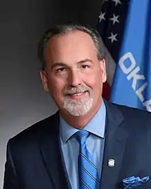 - ↑ Savage, Tres (14 November 2018). "Senate members sworn in, Stitt 'excited' to work with #okleg". Non Doc. Retrieved 4 August 2021.