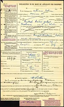 William Collins passport application (1935)