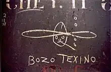 This 55 min. experimental documentary film was shot primarily in black & white 8mm & 16mm film and was subsequently digitally edited. With a goal of tracing the true identity behind Bozo Texino, whose iconic hand-drawn cowboy moniker has appeared on the sides of trains for nearly a century, Bill Daniel hopped boxcars with drifters and camped in hobo jungles, all the while collecting stories and images of a little-known American folk art tradition.[1]