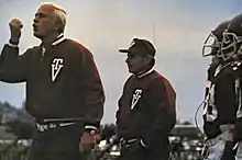 After his tenure at North Carolina, Dooley served as the athletic director and head football coach at Virginia Tech. He led the Hokies to three bowl games—as many as they had attended in their entire history prior to his arrival. His best team was the 1986 unit, which went 9–2–1 and won the Peach Bowl. That team was later awarded a 10th win after Temple forfeited its entire 1986 schedule—including a 29–13 win over the Hokies—due to an ineligible player.[2] Thus Dooley "officially" owns Virginia Tech's first-ever 10-win season.