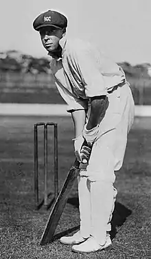 Ponsford learnt the rudiments of cricket from his uncle Cuthbert Best—a former club player for Fitzroy.[8] He had the best batting and bowling averages for his school team in 1913, 1914 and 1915 and eventually rose to the captaincy.[9] His local grade club, Fitzroy, awarded Ponsford a medallion—presented by the local mayor—as the most outstanding cricketer for his school during the 1913–14 and 1914–15 seasons.[8] The medallion was awarded along with an honorary membership of the club, and Ponsford trained enthusiastically, running from school to the nearby Brunswick Street Oval in the Edinburgh Gardens to practise in the nets.[9] Les Cody, the general secretary of Fitzroy Cricket Club and a first-class cricketer with New South Wales and Victoria, was Ponsford's first cricketing role model.[10]