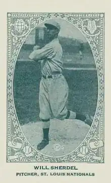 William Henry Sherdel (August 15, 1896 – November 14, 1968) was a professional baseball player. He was a left-handed pitcher over parts of fifteen seasons (1918–1932) with the St. Louis Cardinals and Boston Braves. For his career, he compiled a 165–146 record in 514 appearances, with a 3.72 earned run average and 839 strikeouts.