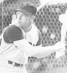 When he arrived at Pittsburgh, he developed an eye condition, for which he received treatment, missing one week of the season.[7] Virdon's vision improved, and he challenged Hank Aaron for the NL batting title. Virdon batted .334 for the Pirates during remainder of the season, which increased his season batting average to .319, second-best in the NL to Aaron, who batted .328.[1][9] Pirates' announcer Bob Prince gave Virdon the nickname "Quail" due to the frequency of his soft-hit infield hits.[1]
