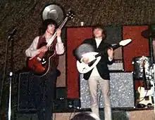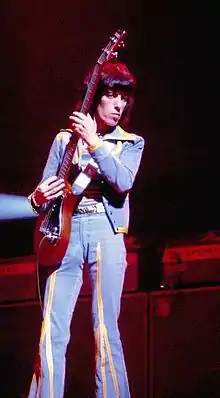 Wyman took piano lessons from age 10 to 13. A year after his marriage on 24 October 1959 to Diane Cory, an 18-year-old bank clerk, he bought a Burns electric guitar for £52 (equivalent to £1,274 in 2021[8]) on hire-purchase, but was not satisfied by his progress.[9] He switched to bass guitar after hearing one at a Barron Knights concert. He created a fretless electric bass guitar[10] by removing[11] the frets on a second hand UK-built Dallas Tuxedo bass[12][13] and played this in a south London band, the Cliftons, in 1961.