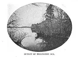 Billington's Sea was discovered in January 1621 by fourteen-year-old Mayflower passenger Francis Billington, son of John Billington.[1] According to tradition, Francis Billington climbed up a tree and spotted what he called a "great sea," believing it to be the Pacific Ocean. He and one of the Mayflower's crew members went to explore the sea, but became alarmed when they saw some abandoned Native American houses. They were alone with only a single gun. In memory of Billington's error, the pond has been called "Billington's Sea" since.[2][3]