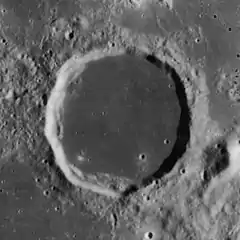Billy is a lunar impact crater that is located at the southern fringes of the Oceanus Procellarum, in the western hemisphere of the Moon. It was named after French mathematician Jacques de Billy.[1] It lies to the southeast of the similar-sized crater Hansteen, and west-southwest of the flooded Letronne.