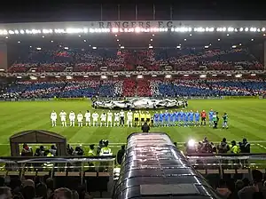 The song was at the centre of a controversy surrounding "ninety-minute bigots", an expression allegedly coined by former Rangers chairman Sir David Murray: "Ninety-minute Bigots do not hold beliefs but nonetheless sing songs at football matches which are sectarian, simply to join in with the rest of the crowd."[14] Rangers have adopted several measures to tackle this behaviour including attempts to bring older Rangers songs back into popular use, with Murray speaking out against the singing of the "Billy Boys" on many occasions.[15] In 2006, Rangers were charged by UEFA for discriminatory chanting over the singing of "Billy Boys" during a UEFA Champions League game against Villarreal. Rangers were found not guilty due to "Billy Boys" having been sung for years without the SFA or the Scottish government intervening against it and ruled that it was tolerated as a social and historic song.[16] However, after an appeal where they were warned, Rangers were ordered by UEFA to make a public announcement at all home games, prohibiting the singing of the song[17] despite UEFA admitting they were unable to do anything about it because it was a Scottish social issue.[18]