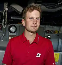 He was commissioned an Ensign in the United States Navy in 2004, rising to the rank of Lieutenant and serving until July 2009.[7] After his graduation from the academy, he was assigned to the USS Gettysburg, a guided-missile cruiser based in Mayport, Florida, where he was a combat electronic division officer.[4] He then taught economics for two years at the Naval Academy. From 2007 to 2009, he served a tour of duty in the Persian Gulf aboard the destroyer USS Chung-Hoon.[8]
