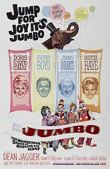 Billy Rose's Jumbo is a 1962 American musical film released by Metro-Goldwyn-Mayer and starring Doris Day, Stephen Boyd, Jimmy Durante, and Martha Raye. An adaptation of the stage musical Jumbo produced by Billy Rose, the film was directed by Charles Walters, written by Sidney Sheldon, and featured Busby Berkeley's choreography. It was nominated for an Academy Award for the adaptation of its Rodgers and Hart score.