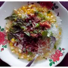 ![]() Binte biluhuta with shredded coconut, shredded skipjack tuna, and shrimp | |