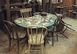 The walls of the Bird Cage were riddled with gunshot holes from shootins by gunfighters of the American frontier. There were 12 balcony boxes where prostitutes worked.[3]