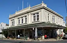 Lake Road, connecting Northcote and Birkenhead, was significantly improved in the 1870s, helping development in Birkenhead.[10] This was aided further by the Auckland Harbour Board constructed a wharf in 1882, which was followed by a post office in 1884.[10] The new wharf allowed orchardists in Birkenhead to better transport produce to the Auckland market,[10] further helped by larger orchardists building their own jetties on Oruamo or Hellyers Creek in the north.[42] In 1886, the Birkenhead and Northcote Fruitgrowing Association was formed.[43]