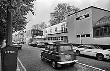 He left Cautley and Barefoot to attend the Bartlett School of Architecture at the University of London (1932–34), where he was taught by A. E. Richardson.[1][2][3] There he was disappointed to find that then-contemporary giants in the architectural field such as Le Corbusier and Frank Lloyd Wright failed to feature in the curriculum, which as he later noted, did not continue far into the 19th century.[2] In 1933 he toured the Netherlands by bicycle, which stimulated his interest in modern styles practised on the Continent, particularly the work of Le Corbusier, Willem Dudok and Erich Mendelsohn.[1][2]