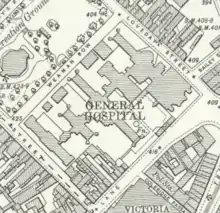 The hospital became part of the new National Health Service in 1948.[10] Until 1964 the hospital was a training centre for nurses, who, on qualification, became members of the General Hospital Birmingham Nurses League.[11] After 1964, training switched to Queen Elizabeth Hospital in the nearby suburb of Edgbaston.[11] The league was wound up in 2000, due to its remaining members' increasing age.[11]