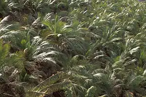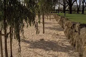 In addition to the mature elms along the river bank and at Speakers Corner, about 200 new trees were planted in the park during its construction. The new plantings focus on Australian species including a mass planting of Macrozamia communis (cycads) on the embankment overlooking Speakers Corner. Also in this area are several Doryanthes excelsa (gymea lilies) and Lepidozamia peroffskyana (pineapple zamia, another cycad). Hundreds of smaller Australian native plants are also present although construction of the William Barak Bridge, which was not part of the original design for the park, destroyed one of the major display plantings on the north-facing embankment of the middle terrace.