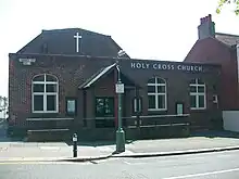 The Benefice and parish of Bishop Hannington Memorial Church includes the Holy Cross Church, a small Anglican church which also worships in the Conservative Evangelical tradition. This is an older building, dating from 1903, and serves the area around Aldrington railway station. There are services every Sunday, including a Communion service each month, and various groups and events for young people both on Sundays and during the week.[6] The boundaries of the parish are Portland Road (between Bolsover Road and Westbourne Street), Rowan Avenue, Hangleton Road, Nevill Avenue and Hove Park.