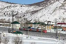 Biskamzha railway station is on the route from Abakan to Novokuznetsk. Two local trains to Abakan and Mezhdurechensk depart from here. Also, the night sleeper train Abakan - Barnaul passes through this station.