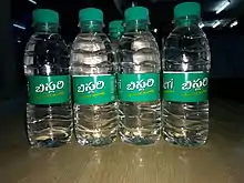 Bisleri has a 32% market share in the organized bottled water segment,[28] in which it mainly competes with PepsiCo's Aquafina, The Coca-Cola Company's Kinley, Parle Agro's Bailley and IRCTC's Rail Neer.[29] Bisleri is often used as a generic term for bottled water in India.[12][28] Many knockoff brands of similar spelling and branding have emerged over the years.[30]