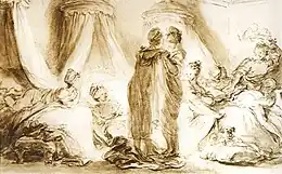 Le coucher des ouvrières, a wash painting using bistre pigment by Jean-Honoré Fragonard (1732–1806)